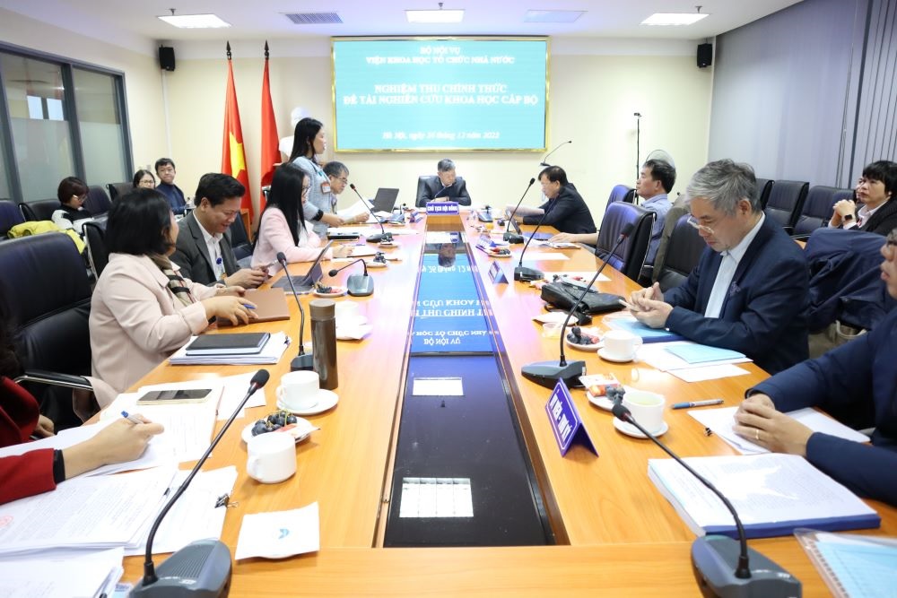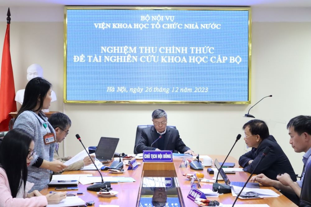 Ngày 26/12/2023, tại trụ sở Bộ Nội vụ, Viện Khoa học tổ chức nhà nước đã tổ chức nghiệm thu chính thức đề tài khoa học cấp Bộ “Hoàn thiện pháp luật về tổ chức hành chính và công vụ, công chức” do TS. Trần Thị Minh Châu, Chuyên viên chính Vụ Pháp chế làm chủ nhiệm, Viện Khoa học tổ chức nhà nước là tổ chức chủ trì.