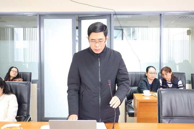 TS. Đoàn Văn Dũng, Trưởng phòng Tổng hợp - Thư ký, Văn Phòng Bộ thay mặt Nhóm nghiên cứu trình bày tóm tắt kết quả nghiên cứu Đề tài.