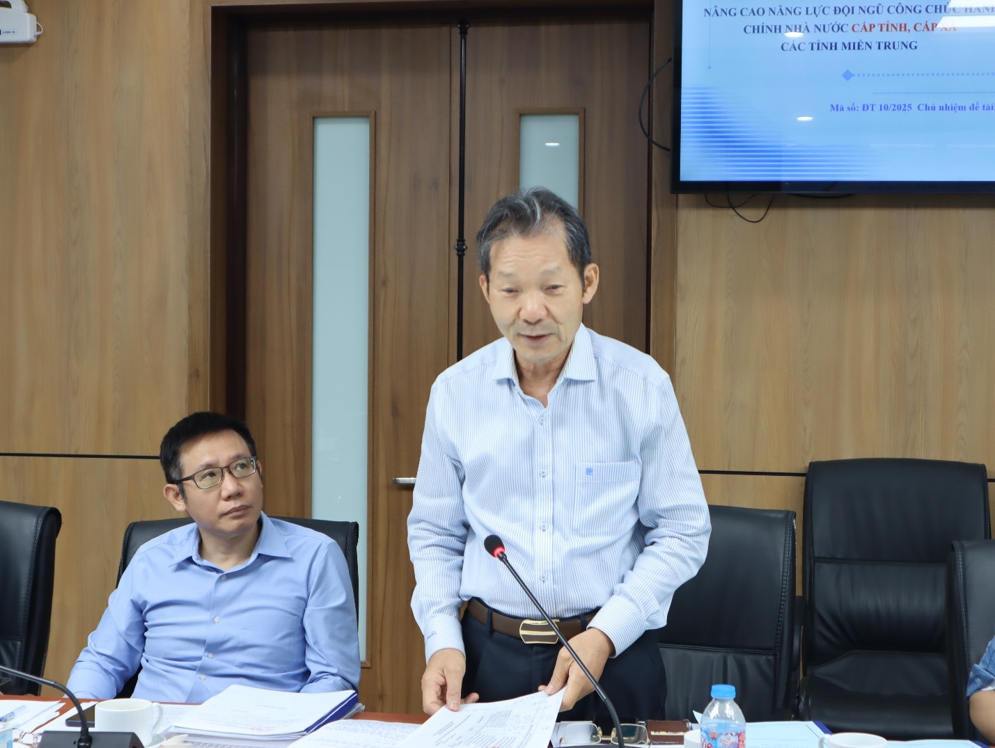 Tại buổi nghiệm thu, TS. Nguyễn Văn Sơn thay mặt Nhóm nghiên cứu trình bày tóm tắt kết quả nghiên cứu của Đề tài. Theo Nhóm nghiên cứu, đội ngũ công chức hành chính nhà nước đóng vai trò quan trọng trong thực thi công vụ trong hệ thống công quyền, bảo đảm hiệu lực, hiệu quả hoạt động công vụ, cung cấp kịp thời chất lượng dịch vụ công cho mọi công dân. Công chức không chỉ đại diện cho hình ảnh và uy tín của bộ máy hành chính, mà còn là cầu nối giữa chủ trương, chính sách của Đảng và Nhà nước với đời sống nhân dân, doanh nghiệp. Chính vì năng lực của đội ngũ công chức quyết định chất lượng thực thi công vụ của mỗi công chức nói riêng, ảnh hưởng đối với chất lượng thực thi công vụ của hệ thống hành chính nhà nước. Do đó, vấn đề nâng cao năng lực của đội ngũ công chức luôn là yêu cầu cấp bách và mang tính thời sự cao.