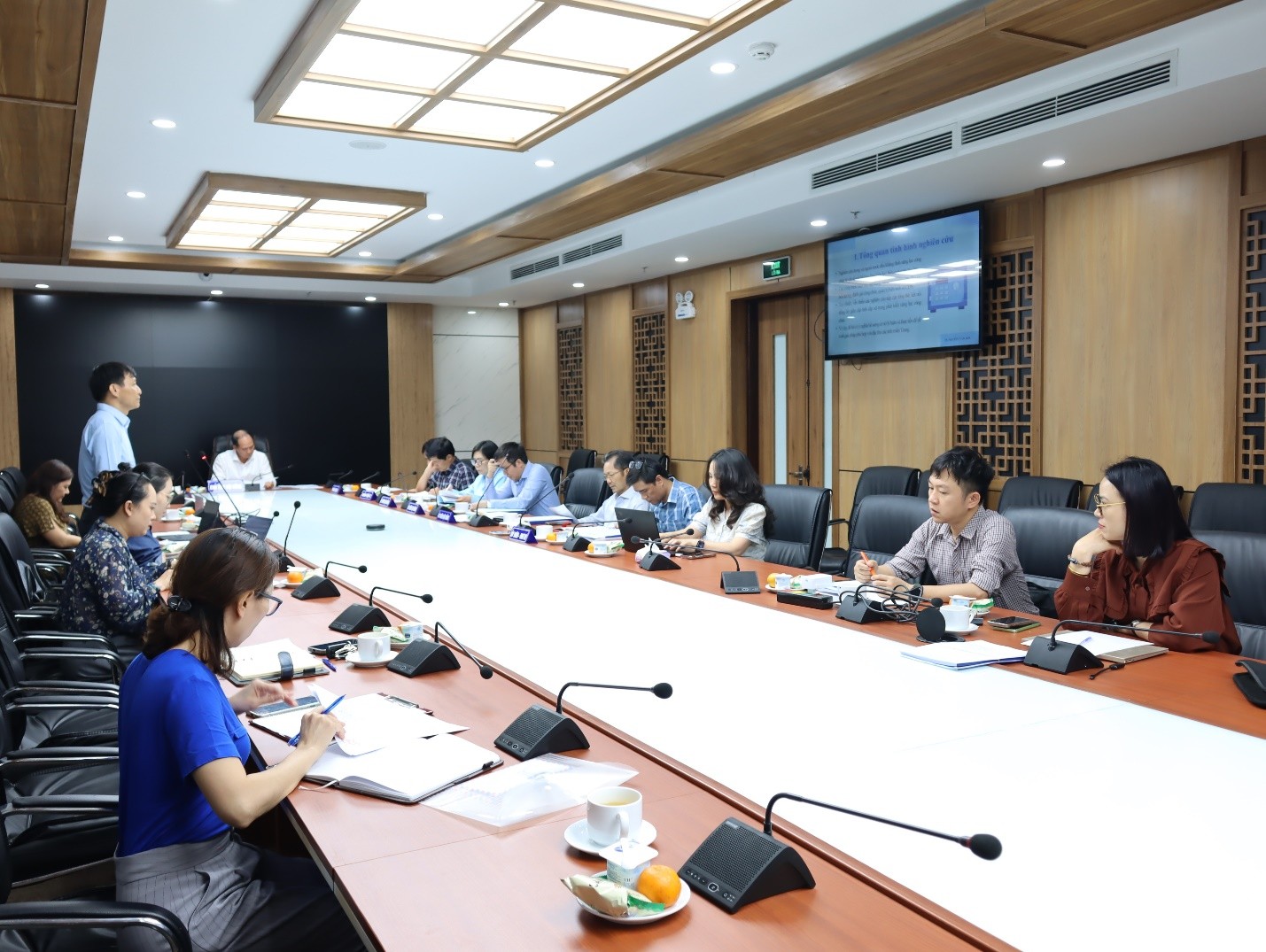 Bên cạnh những kết quả tích cực đã đạt được, Hội đồng nghiệm thu cũng chỉ ra một số điểm cần hoàn thiện trong nội dung Đề tài. Cụ thể, tại phần mở đầu, Nhóm nghiên cứu cần diễn đạt lại mục “tính cấp thiết, cấp bách, ý nghĩa lý luận và thực tiễn” sao cho súc tích và mạch lạc hơn, đồng thời làm rõ nét những giá trị lý luận và thực tiễn mà Đề tài mang lại. Đối với phần tổng quan nghiên cứu, Hội đồng yêu cầu cần chỉ rõ tên các tác giả, tác phẩm gắn liền với từng nội dung vấn đề giải quyết. Song song với đó, Nhóm nghiên cứu cần sắp xếp lại logic trình bày để làm nổi bật mạch tư duy khoa học, chỉ ra những nội dung kế thừa từ các công trình đi trước và xác định rõ khoảng trống cần nghiên cứu.