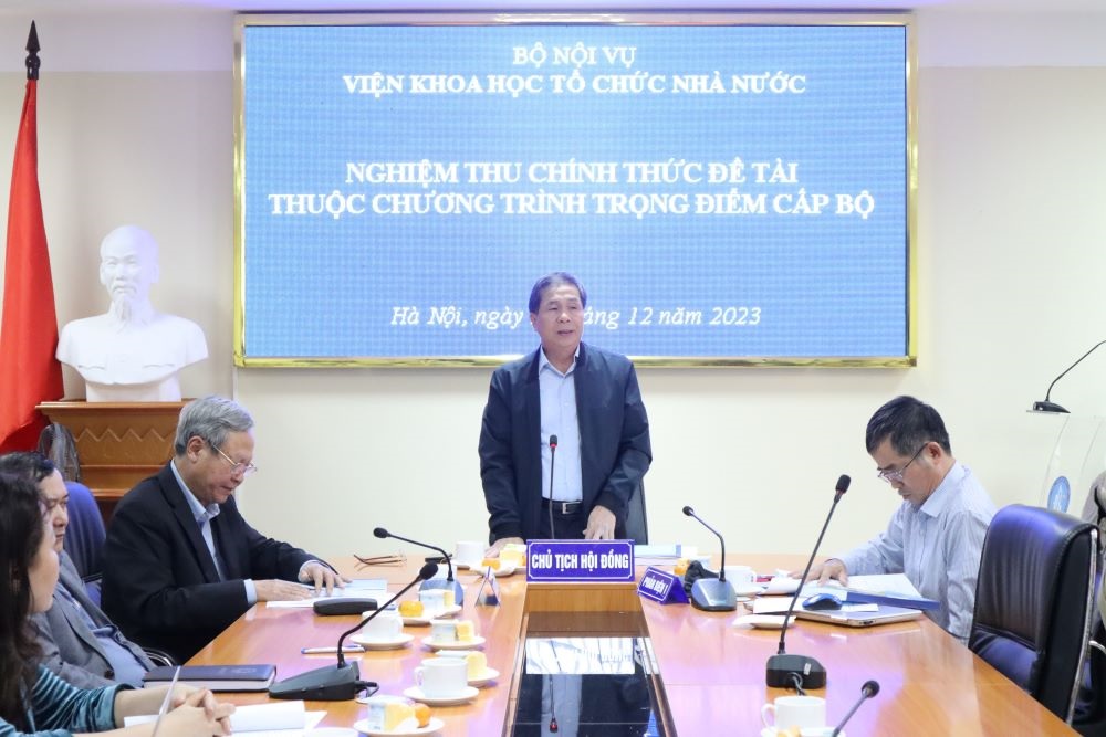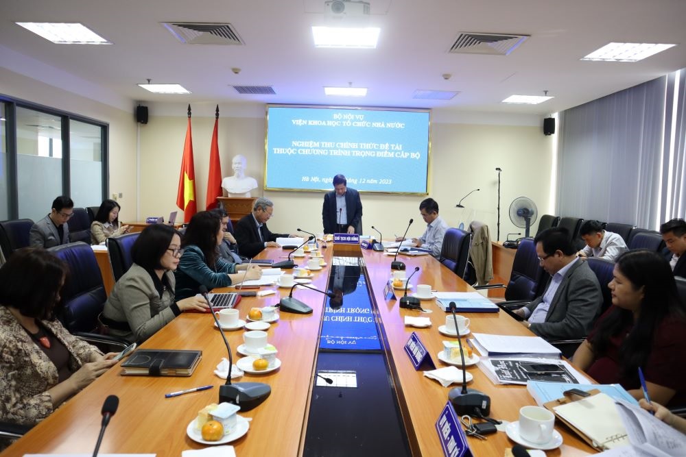 Ngày 28/12/2023, tại trụ sở Bộ Nội vụ, Viện Khoa học tổ chức nhà nước đã tổ chức nghiệm thu chính thức đề tài “Thiết kế mẫu cơ cấu tổ chức bộ máy của bộ, sở” thuộc Chương trình khoa học trọng điểm cấp Bộ do PGS.TS. Trần Thị Diệu Oanh, Trưởng khoa, Học viện Hành chính Quốc gia, Bộ Nội vụ làm chủ nhiệm.