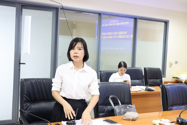 TS. Chu Thị Khánh Ly, Giảng viên chính, Khoa Lưu trữ học và Quản trị Văn phòng, Học viện Hành chính Quốc gia, Bộ Nội vụ thay mặt Nhóm nghiên cứu trình bày tóm tắt kết quả nghiên cứu Đề tài.