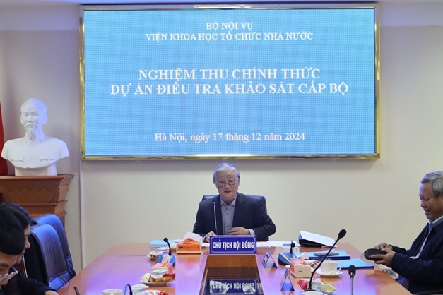 Ngày 17/12/2024, tại trụ sở Bộ Nội vụ, Viện Khoa học tổ chức nhà nước đã tổ chức nghiệm thu chính thức dự án điều tra khảo sát cấp Bộ “Điều tra thực trạng đánh giá, xếp loại công chức hành chính” do Viện Khoa học tổ chức nhà nước là đơn vị tổ chức chủ trì.