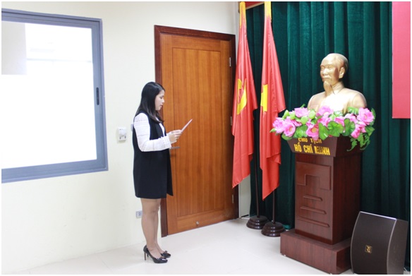 Đ/c Lê Anh Tuấn trao Quyết định kết nạp Đảng viên cho đ/c Nguyễn Lan Phương