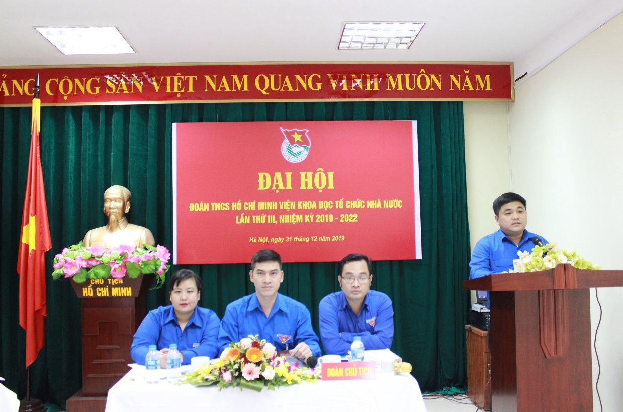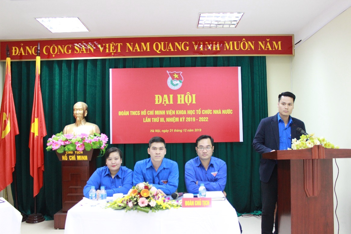 Được sự đồng ý của Đảng ủy, Lãnh đạo Viện, sáng ngày 31/12/2019, tại Hội trường tầng 11, trụ sở Bộ Nội vụ, Đoàn Thanh niên Viện Khoa học tổ chức nhà nước đã long trọng tổ chức Đại hội đại biểu Đoàn Thanh niên Viện Khoa học tổ chức nhà nước lần thứ III, nhiệm kỳ 2019 - 2022 với chủ đề “Tuổi trẻ Viện Khoa học tổ chức nhà nước đoàn kết, xung kích và sáng tạo”.