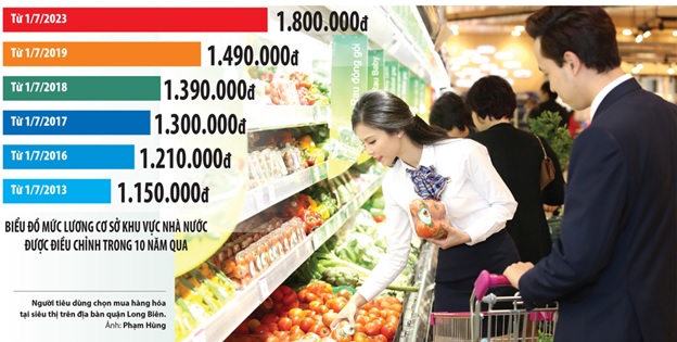 Biểu đồ mức lương cơ sở khu vực nhà nước được điều chỉnh trong 10 năm qua