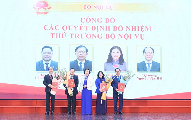 Bộ trưởng Phạm Thị Thanh Trà trao Quyết định của Thủ tướng Chính phủ cho 4 Thứ trưởng Bộ Nội vụ