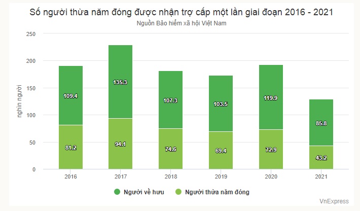 Thống kê giai đoạn 2016-2021, cả nước có thêm 661.000 lao động nghỉ việc hưởng lương hưu hàng tháng, 435.000 người trong đó nhận trợ cấp một lần vì thừa số năm đóng BHXH tối đa (chiếm gần 66%). Bình quân 3 người nghỉ hưu thì có hai người được hưởng mức tối đa 75%.