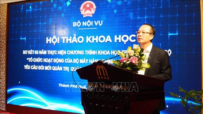 Ngày 14/4, tại thành phố Huế, Bộ Nội vụ tổ chức Hội thảo khoa học sơ kết 3 năm (2020 - 2022) thực hiện chương trình khoa học trọng điểm cấp Bộ “Tổ chức hoạt động của bộ máy hành chính Nhà nước đáp ứng yêu cầu đổi mới quản trị quốc gia theo định hướng hiện đại, hiệu quả”.