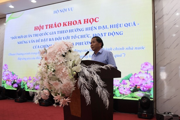 Thứ trưởng Triệu Văn Cường nhấn mạnh, Đại hội đại biểu toàn quốc lần thứ XIII của Đảng đã đề ra chủ trương xây dựng và hoàn thiện nền quản trị quốc gia hiện đại, hiệu quả, theo đó trong Chiến lược phát triển kinh tế - xã hội giai đoạn 2021 - 2030 đã xác định: “Đổi mới quản trị quốc gia theo hướng hiện đại, nhất là quản lý phát triển và quản lý xã hội. Xây dựng bộ máy nhà nước pháp quyền xã hội chủ nghĩa tinh gọn, hiệu lực, hiệu quả, đẩy mạnh phân cấp, phân quyền bảo đảm quản lý thống nhất, phát huy tính chủ động, sáng tạo và trách nhiệm của các cấp, các ngành”.