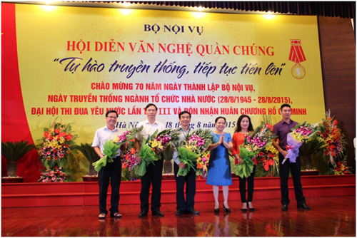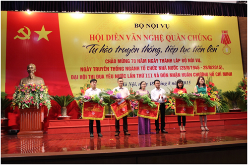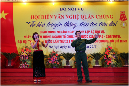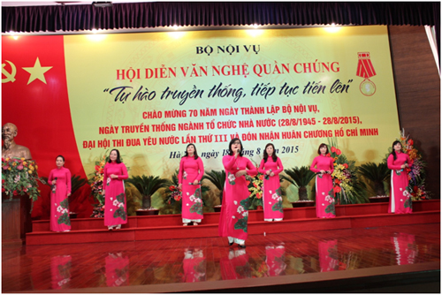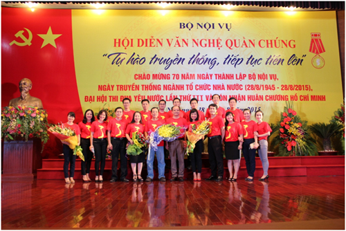 Trong không khí phấn khởi chào mừng 70 năm Cách mạng Tháng 8 thành công và Quốc khánh 2/9, chào mừng 70 năm ngày thành lập Bộ Nội vụ, ngày truyền thống ngành Tổ chức nhà nước (28/8/1945 – 28/8/2015), Đại hội thi đua yêu nước lần thứ III và đón nhận Huân chương Hồ Chí Minh, tối ngày 18/8/2015 tại trụ sở Bộ Nội vụ đã diễn ra Hội diễn văn nghệ quần chúng với chủ đề “Tự hào truyền thống, tiếp tục tiến lên” (Hội diễn), với 08 đội thi đến từ các đơn vị thuộc và trực thuộc Bộ (Cơ quan Bộ Nội vụ, Ban Thi đua - Khen thưởng Trung ương, Cục Văn thư Lưu trữ Nhà nước, Viện Khoa học tổ chức nhà nước, Học viện Hành chính Quốc gia, Đại học Nội vụ Hà Nội, Ban Tôn giáo Chính phủ và Trường Đào tạo bồi dưỡng cán bộ công chức).