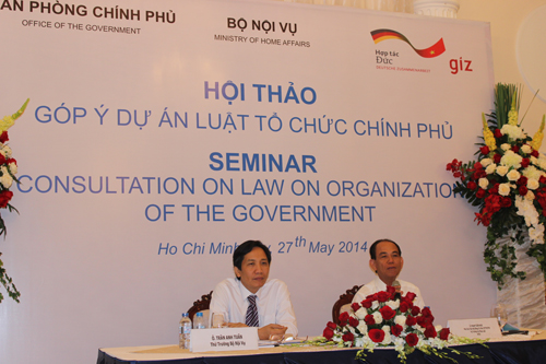 Ngày 27/5/2014, tại Thành phố Hồ Chí Minh, Bộ Nội vụ phối hợp với Văn phòng Chính phủ và có sự hỗ trợ của Dự án GIZ (CHLB Đức) tổ chức Hội thảo góp ý Dự án Luật Tổ chức Chính phủ sửa đổi (Hội thảo).