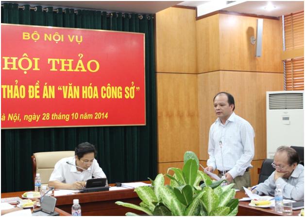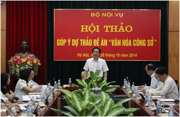 Ngày 28/10/2014, tại trụ sở Bộ, Bộ Nội vụ tổ chức Hội thảo góp ý dự thảo Đề án “Văn hoá công sở” (Đề án). Thứ trưởng Trần Anh Tuấn, Trưởng Ban xây dựng Đề án chủ trì Hội thảo. Tham dự Hội thảo có đại diện lãnh đạo một số bộ, ngành; lãnh đạo các đơn vị thuộc và trực thuộc Bộ Nội vụ; đại diện Sở Nội vụ một số tỉnh, thành phố trực thuộc Trung ương và các nhà khoa học.