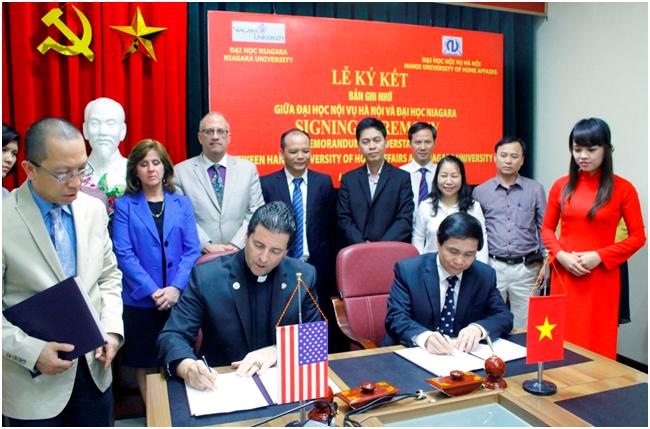 Cùng ngày, các đại biểu cũng đã chứng kiến lễ ký kết biên bản ghi nhớ hợp tác giữa Trường Đại học Nội vụ Hà Nội với trường Đại học Niagara.