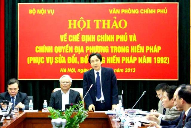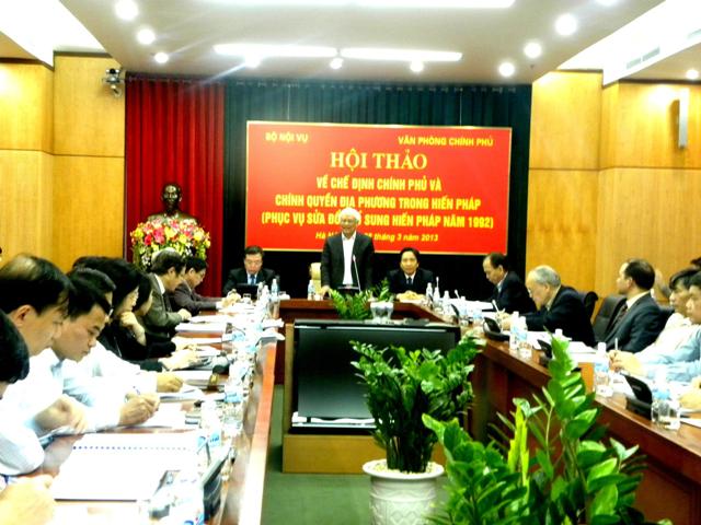 Ngày 08/3/2013, tại Hà Nội, Bộ Nội vụ và Văn phòng Chính phủ đã phối hợp tổ chức hội thảo về “Chế định Chính phủ và chính quyền địa phương trong Hiến pháp” (phục vụ sửa đổi, bổ sung Hiến pháp năm 1992).