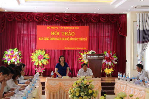 Trong hai ngày 12 - 13/5/2014, Bộ Nội vụ và Ủy ban Dân tộc đã phối hợp với UBND tỉnh Yên Bái và UBND tỉnh Tuyên Quang tổ chức Hội thảo xây dựng chính sách cán bộ dân tộc tại tỉnh Yên Bái và tỉnh Tuyên Quang để lấy ý kiến đóng góp vào Dự thảo lần thứ nhất của Thông tư liên tịch Quy định chi tiết và hướng dẫn thi hành Điều 11 Nghị định số 05/2011/NĐ-CP ngày 14/01/2011 của Chính phủ về công tác dân tộc.
