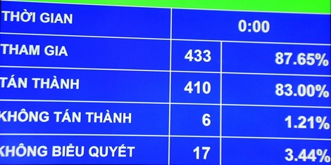 Sau phần giải trình, có 433 đại biểu tham gia bỏ phiếu (87,65%) trong đó có 410 đại biểu tán thành (83,00%), 06 đại biểu không tán thành (1,21%) và 17 đại biểu không biểu quyết (3,44%).