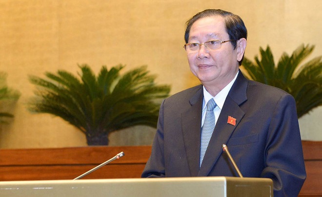 Bộ trưởng Bộ Nội vụ Lê Vĩnh Tân, đại diện Chính phủ, trình bày tờ trình luật sửa đổi, bổ sung một số điều luật Cán bộ, công chức và luật Viên chức tại kỳ họp 7 vừa qua. ẢNH: GIA HÂN
