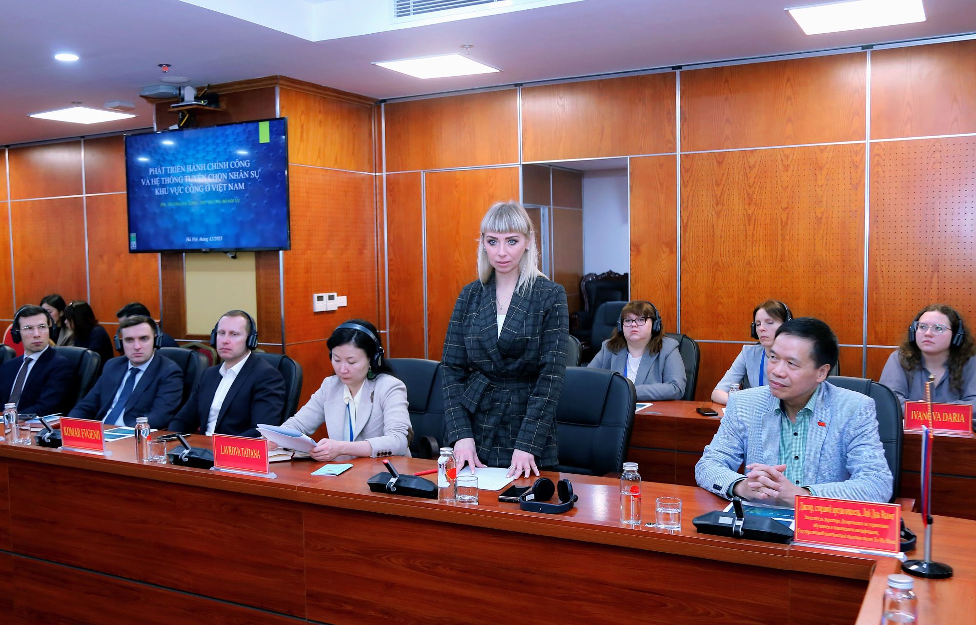 Đại diện các công chức cấp cao Liên bang Nga, bà Natalia Shafinskaya – Vụ trưởng Vụ Hợp tác quốc tế, Học viện Tổng thống Nga, phát biểu bày tỏ sự ấn tượng trước những kết quả cải cách hành chính của Việt Nam và mong muốn tiếp tục thúc đẩy các hoạt động trao đổi học thuật, đối thoại chính sách sâu rộng hơn nữa.