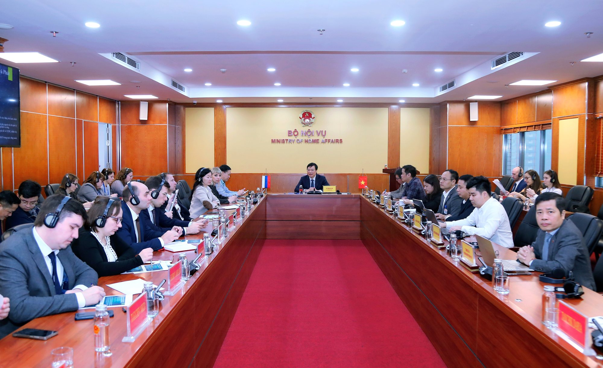 Thứ trưởng Bộ Nội vụ Trương Hải Long chủ trì buổi làm việc với Đoàn công chức cấp cao Liên bang Nga.
