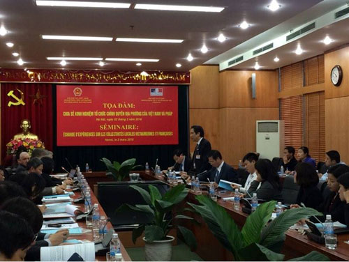Trong khuôn khổ hợp tác giữa Bộ Nội vụ Việt Nam và Bộ Nội vụ Pháp, được sự giúp đỡ của Đại sứ quán Pháp tại Việt Nam, ngày 03 tháng 3 năm 2016, tại Hà Nội, Bộ Nội vụ tổ chức buổi tọa đàm “Chia sẻ kinh nghiệm tổ chức chính quyền địa phương của Việt Nam và Pháp”.