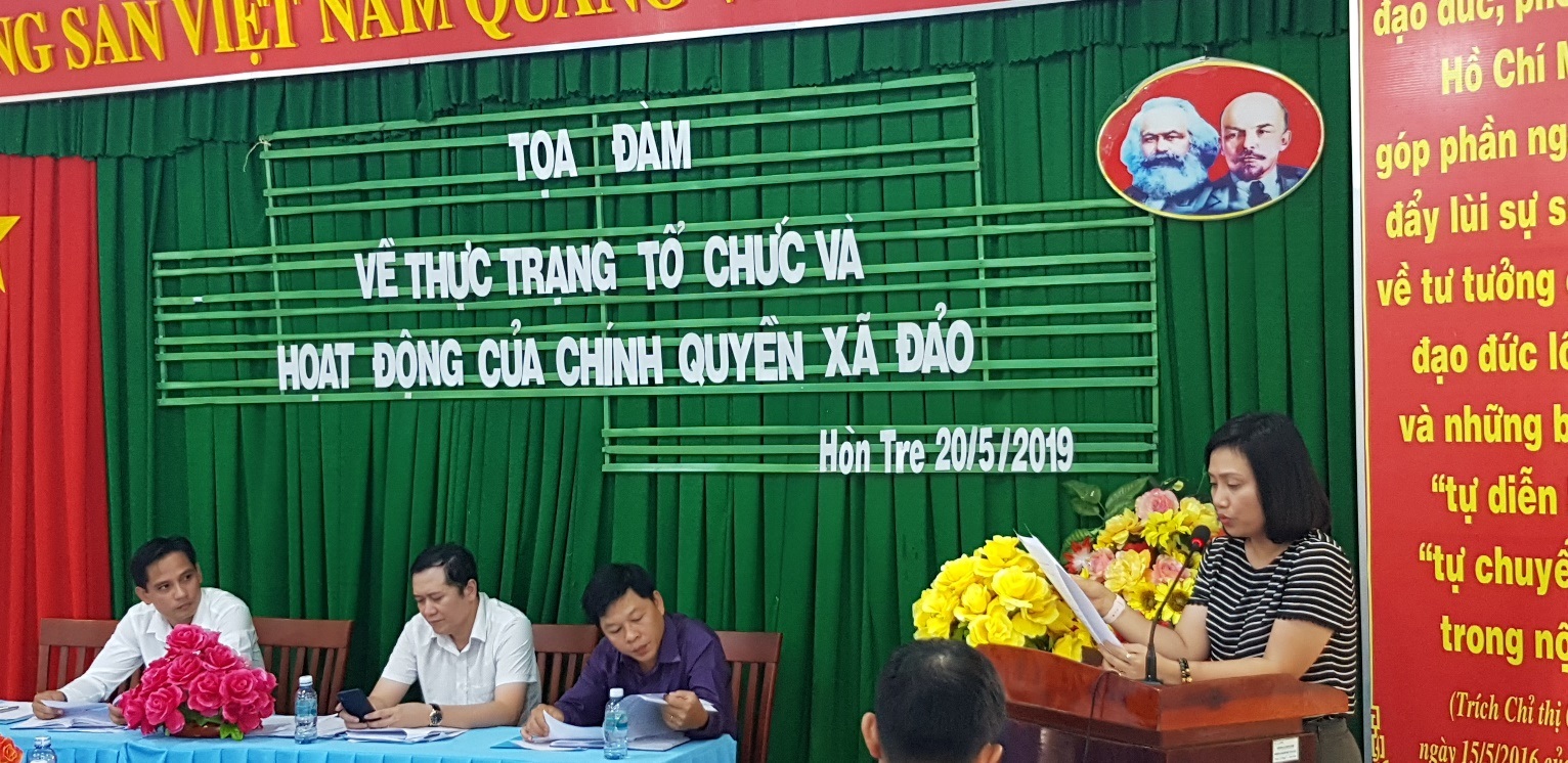 Tại các cuộc Hội nghị, đại diện lãnh đạo cùng cán bộ, công chức UBND huyện và xã đảo đã tiến hành trả lời phiếu, thảo luận, chia sẻ rất nhiều ý kiến, nhận xét khách quan về thực trạng của chính quyền huyện đảo. Nhiều đại biểu tham dự cho rằng việc đổi mới tổ chức và hoạt động của chính quyền huyện đảo là cần thiết và cấp bách. Ví dụ như có thể bỏ bớt HĐND cấp huyện và cấp xã tại các huyện đảo vì hiện nay HĐND hoạt động mang tính hình thức. Đối với các vấn đề đã được HĐND cấp tỉnh quyết thì việc của HĐND cấp huyện và cấp xã là biểu quyết lại những vấn đề trên. Đồng thời có thể bỏ UBND cấp xã, tập trung năng lực cho cán bộ, công chức tại các phòng chuyên môn cấp huyện, cấp Sở và cán bộ không chuyên trách tại thôn, khu. Một số ý kiến cho rằng cần làm tốt nhiệm vụ lấy ý kiến cử tri một cách công khai, minh bạch, tăng cường ý kiến phản biện của đại biểu HĐND hơn nữa.