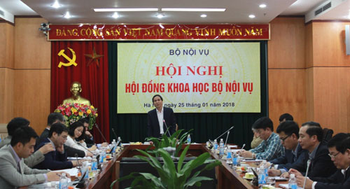 Ngày 25/01/2018, Bộ Nội vụ đã tổ chức Hội nghị Hội đồng khoa học của Bộ Nội vụ (Hội nghị) nhằm tổng kết, đánh giá hoạt động khoa học, công nghệ năm 2017 và phương hướng hoạt động khoa học, công nghệ năm 2018 của Bộ Nội vụ. PGS.TS Triệu Văn Cường, Thứ trưởng Bộ Nội vụ, Chủ tịch Hội đồng khoa học chủ trì Hội nghị. Tham dự Hội nghị có các Ủy viên Hội đồng khoa học của Bộ Nội vụ, các đại biểu là lãnh đạo các đơn vị thuộc và trực thuộc Bộ, lãnh đạo Viện Khoa học tổ chức nhà nước (Viện) và đại diện lãnh đạo các đơn vị thuộc Viện.