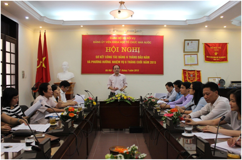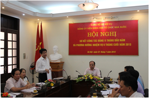 Ngày 22/7/2015, Đảng bộ Viện Khoa học tổ chức nhà nước (Đảng bộ Viện) đã tổ chức Hội nghị sơ kết công tác đảng 6 tháng đầu năm và phương hướng nhiệm vụ 6 tháng cuối năm 2015. Tham dự Hội nghị có toàn bộ đảng viên các Chi bộ thuộc Đảng bộ Viện. Đồng chí Trần Văn Ngợi, Bí thư Đảng bộ, Quyền Viện trưởng Viện KHTCNN chủ trì Hội nghị.