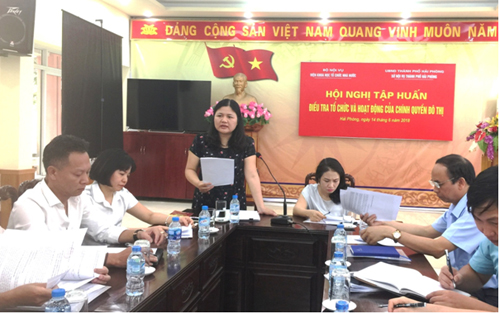 Trong khuôn khổ Dự án “Điều tra thực trạng, đề xuất giải pháp đổi mới tổ chức và hoạt động của chính quyền đô thị” ngày 14/6/2018, Viện Khoa học tổ chức nhà nước, Bộ Nội vụ phối hợp với Sở Nội vụ thành phố Hải phòng đã tổ chức Hội nghị tập huấn “Điều tra thực trạng, đề xuất giải pháp đổi mới tổ chức và hoạt động của chính quyền đô thị” đối với một số cơ quan hành chính tại thành phố Hải Phòng.
