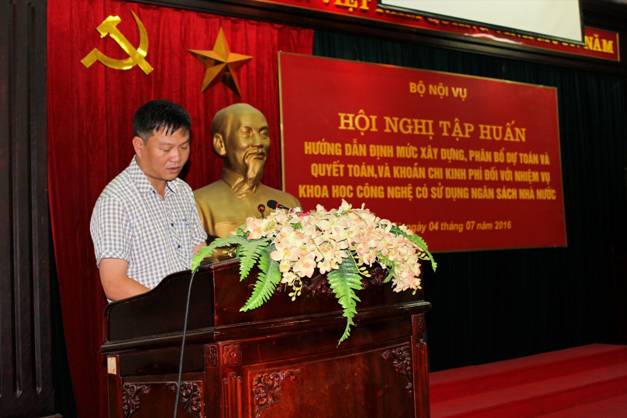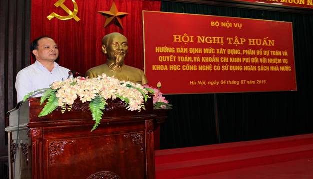 Ngày 04/7/2016, Viện Khoa học tổ chức nhà nước đã phối hợp với Vụ Kế hoạch - Tài chính, Bộ Nội vụ tổ chức Hội nghị tập huấn “Hướng dẫn định mức xây dựng, phân bổ dự toán, quyết toán kinh phí và quy định khoán chi thực hiện nhiệm vụ khoa học và công nghệ có sử dụng ngân sách nhà nước”. PGS.TS. Triệu Văn Cường, Ủy viên Ban cán sự Đảng, Thứ trưởng Bộ Nội vụ, Chủ tịch Hội đồng khoa học Bộ Nội vụ chủ trì Hội nghị tập huấn.