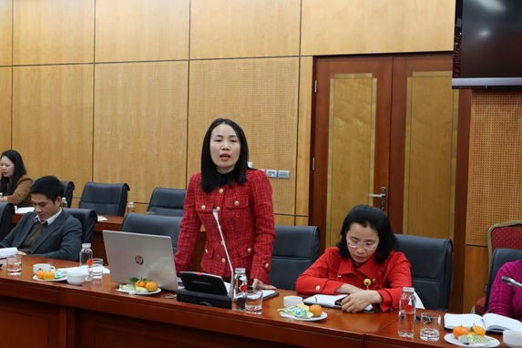 Bà Hoàng Thị Lan Hương, Phó Trưởng phòng Quản lý Khoa học phát biệu tại Hôi nghị