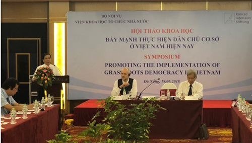 Ngày 19/6/2018 tại Đà Nẵng, Viện Khoa học tổ chức nhà nước, Bộ Nội vụ (Viện KHTCNN) đã phối hợp với Văn phòng Viện KAS (Cộng hòa Liên bang Đức) tổ chức Hội thảo “Đẩy mạnh thực hiện dân chủ cơ sở ở Việt Nam hiện nay”(Hội thảo).