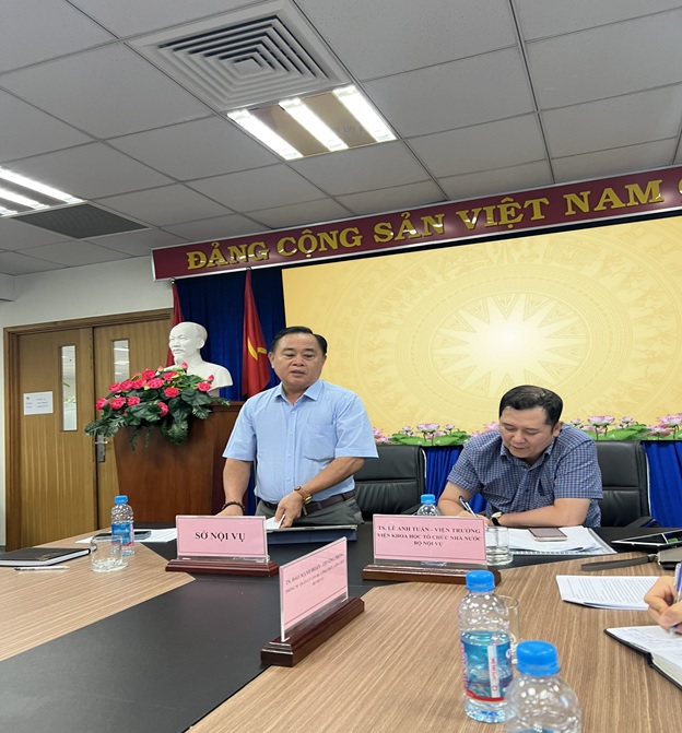 Trong khuôn khổ thực hiện Dự án: “Điều tra, đánh giá thực trạng thí điểm đổi mới cách tuyển chọn lãnh đạo, quản lý cấp vụ, cấp sở, cấp phòng”, ngày 23/4/2024 tại tỉnh Bình Dương, Viện Khoa học tổ chức nhà nước phối hợp với Sở Nội vụ tỉnh Bình Dương tổ chức Hội thảo: “Đổi mới cách tuyển chọn lãnh đạo, quản lý cấp sở, cấp phòng - Thực trạng và giải pháp” (Hội thảo). TS. Lê Anh Tuấn, Viện trưởng Viện Khoa học tổ chức nhà nước và ông Lý Văn Đẹp, Phó Giám đốc Sở Nội vụ tỉnh Bình Dương đồng chủ trì Hội thảo.