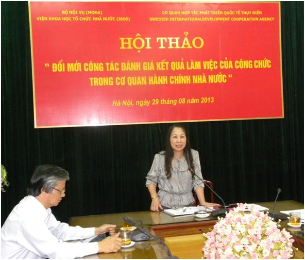 Sáng ngày 29/8/2013, tại Hà Nội, Viện Khoa học tổ chức nhà nước đã phối hợp với Cơ quan Hợp tác phát triển quốc tế Thụy Điển (SIDA) tổ chức Hội thảo “Đổi mới công tác đánh giá kết quả làm việc của công chức trong cơ quan hành chính nhà nước”.