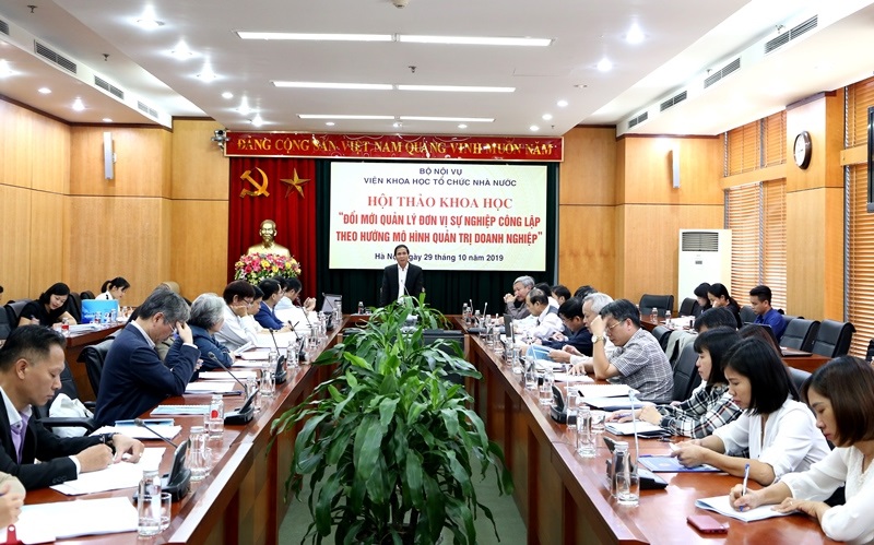Tại buổi Tọa đàm, các đại biểu đã được nghe nhiều tham luận với những ý kiến đóng góp của các nhà khoa học, các cơ quan chuyên môn, như: “Những vấn đề đặt ra đối với việc đổi mới quản lý của các đơn vị sự nghiệp công lập theo hướng mô hình quản trị doanh nghiệp” của TS. Đinh Duy Hoà, nguyên Vụ trưởng Vụ Cải cách hành chính, Bộ Nội vụ; “Giải pháp đổi mới công tác quản lý đơn vị sự nghiệp công lập theo hướng vận dụng mô hình quản trị doanh nghiệp” của TS. Dương Quang Tung, Nguyên Phó Viện trưởng Viện Khoa học tổ chức nhà nước, Bộ Nội vụ; “Đổi mới công tác quản lý của các đơn vị sự nghiệp công lập theo hướng mô hình quản trị doanh nghiệp trong lĩnh vực giáo dục” của PGS.TS Đặng Xuân Hải, Đại học Giáo dục, Đại học Quốc Gia Hà Nội,…
