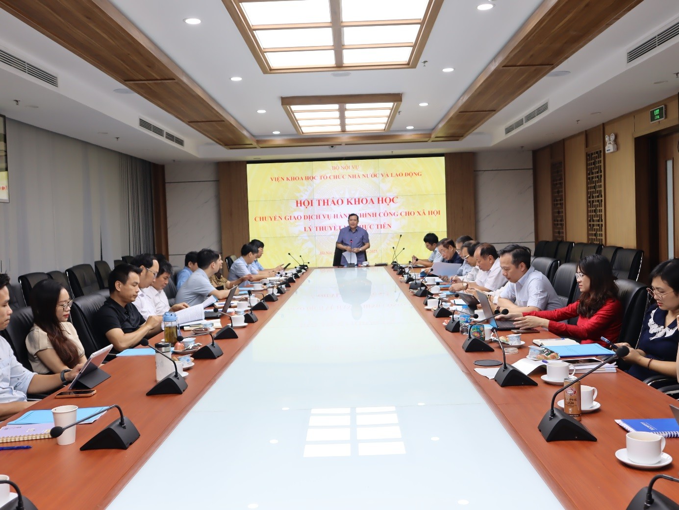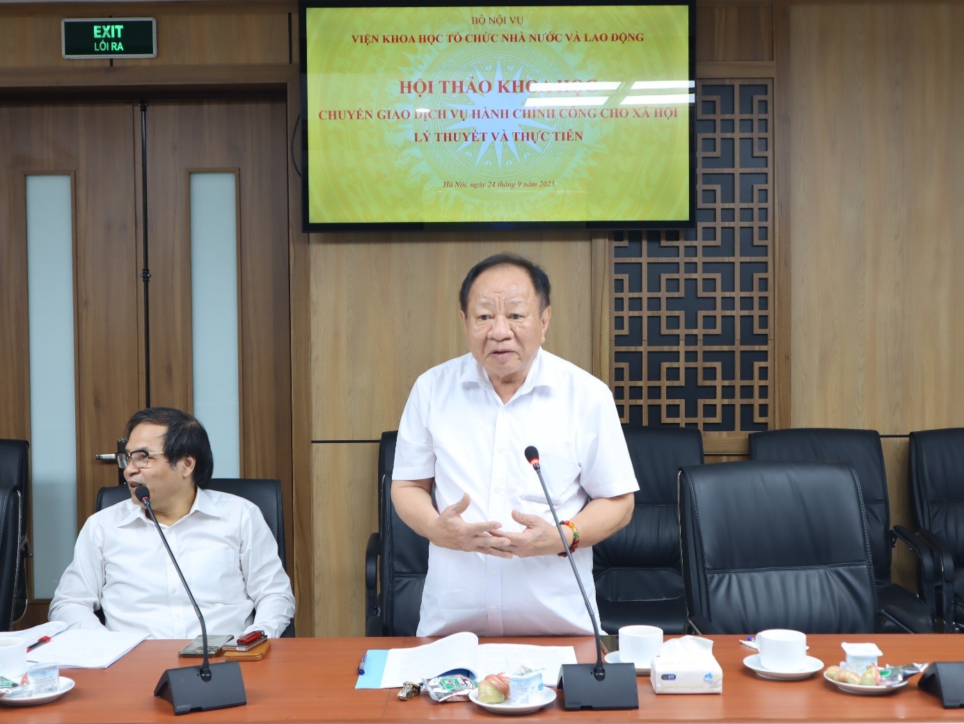 Phát biểu khai mạc Hội thảo, TS. Lê Anh Tuấn, Viện trưởng Viện Khoa học Tổ chức nhà nước và Lao động nhấn mạnh, việc chuyển giao một số nhiệm vụ, dịch vụ hành chính công từ Nhà nước sang xã hội là xu hướng tất yếu trên thế giới, phù hợp với bối cảnh hội nhập và yêu cầu cải cách hành chính. Thực tiễn nhiều quốc gia cho thấy, mô hình này giúp huy động nguồn lực xã hội, nâng cao chất lượng phục vụ, khuyến khích đổi mới sáng tạo, đồng thời tinh gọn bộ máy, tăng hiệu lực, hiệu quả quản lý. Tại Việt Nam, quan điểm nhất quán của Đảng và Nhà nước trong tiến trình đổi mới là Nhà nước chỉ làm những việc xã hội không làm hoặc xã hội không thể làm và chuyển giao những nhiệm vụ mà Nhà nước không nên làm hoặc làm hiệu quả thấp cho các tổ chức xã hội, tổ chức phi chính phủ đảm nhận, giảm bớt đầu mối trung gian. Chương trình tổng thể cải cách hành chính nhà nước giai đoạn 2021-2030 cùng Kết luận số 50-KL/TW ngày 28/2/2023 của Bộ Chính trị về tiếp tục thực hiện Nghị quyết số 18 - NQ/TW ngày 25/10/2017 của Ban Chấp hành Trung ương Đảng Khóa XII “Một số vấn đề về tiếp tục đổi mới, sắp xếp tổ chức bộ máy của hệ thống chính trị tinh gọn, hoạt động hiệu lực, hiệu quả" đã nêu rõ việc “kiên quyết chuyển cho doanh nghiệp, các tổ chức xã hội đảm nhiệm những nhiệm vụ và dịch vụ hành chính công mà Nhà nước không nhất thiết phải thực hiện”.