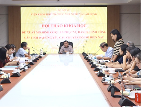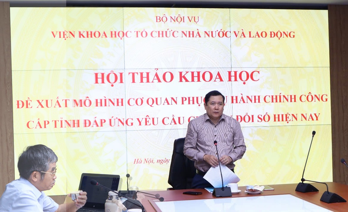 Theo đó, TS. Lê Anh Tuấn Viện trưởng Viện Khoa học Tổ chức nhà nước và Lao động đề nghị các chuyên gia, các nhà khoa học cần tập trung nghiên cứu, thảo luận, làm rõ một số nội dung như: một số vấn đề lý luận về mô hình tổ chức cơ quan phục vụ hành chính công cấp tỉnh; tiêu chí đánh giá mức độ hợp lí của mô hình cơ quan phục vụ hành chính công cấp tỉnh; đánh giá thực trạng mô hình cơ quan phục vụ hành chính công cấp tỉnh trong bối cảnh chuyển đổi số và thực hiện chính quyền 02 cấp hiện nay; bối cảnh, yêu cầu, quan điểm đề xuất mô hình cơ quan phục vụ hành chính công cấp tỉnh đáp ứng yêu cầu chuyển đổi số hiện nay.