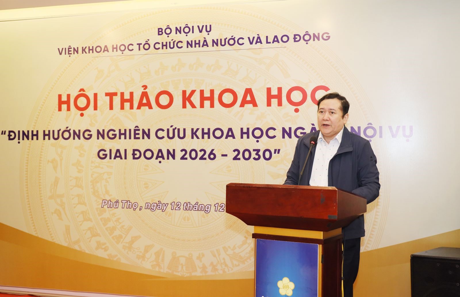 Ngày 12/12/2025, tại tỉnh Phú Thọ, Viện Khoa học Tổ chức nhà nước và Lao động tổ chức Hội thảo khoa học “Định hướng nghiên cứu khoa học ngành Nội vụ giai đoạn 2026 - 2030”. TS. Lê Anh Tuấn, Viện trưởng Viện Khoa học Tổ chức nhà nước và Lao động chủ trì Hội thảo.