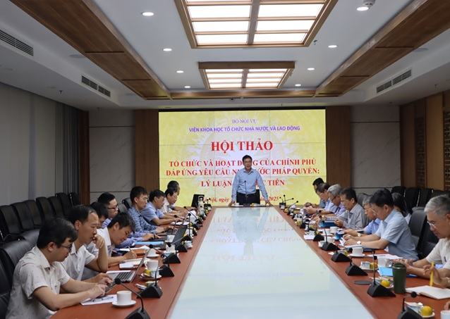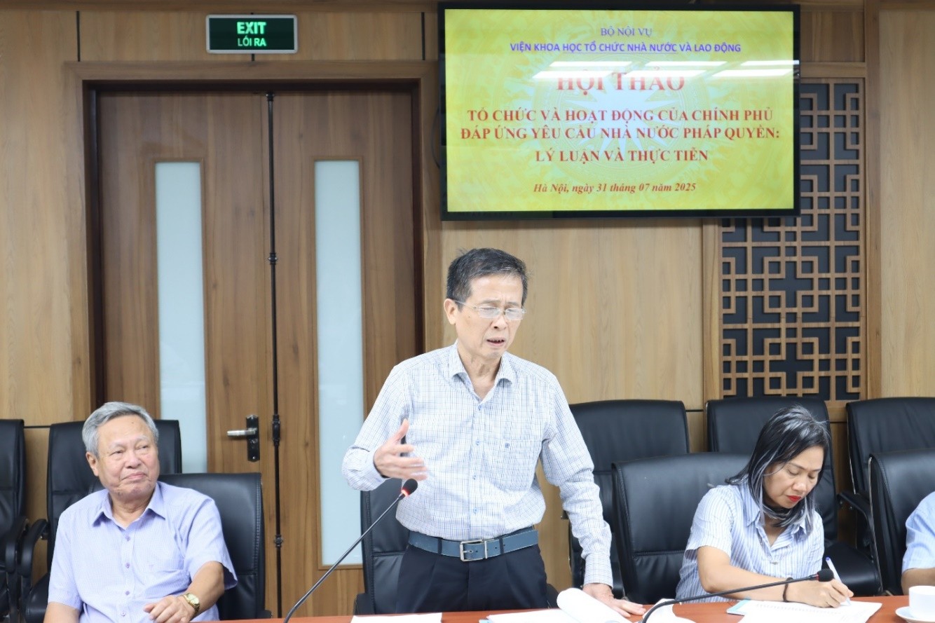 Ngày 31/7/2025, tại trụ sở Bộ Nội vụ (37 Nguyễn Bỉnh Khiêm, Hà Nội), Viện Khoa học Tổ chức nhà nước và Lao động (Bộ Nội vụ) tổ chức Hội thảo “Tổ chức và hoạt động của Chính phủ đáp ứng yêu cầu của nhà nước pháp quyền: Lý luận và thực tiễn”. Hội thảo nhằm trao đổi, thảo luận, làm rõ một số vấn đề lý luận và thực tiễn; từ đó đề xuất các giải pháp nâng cao hiệu quả tổ chức và hoạt động của Chính phủ đáp ứng yêu cầu của nhà nước pháp quyền.