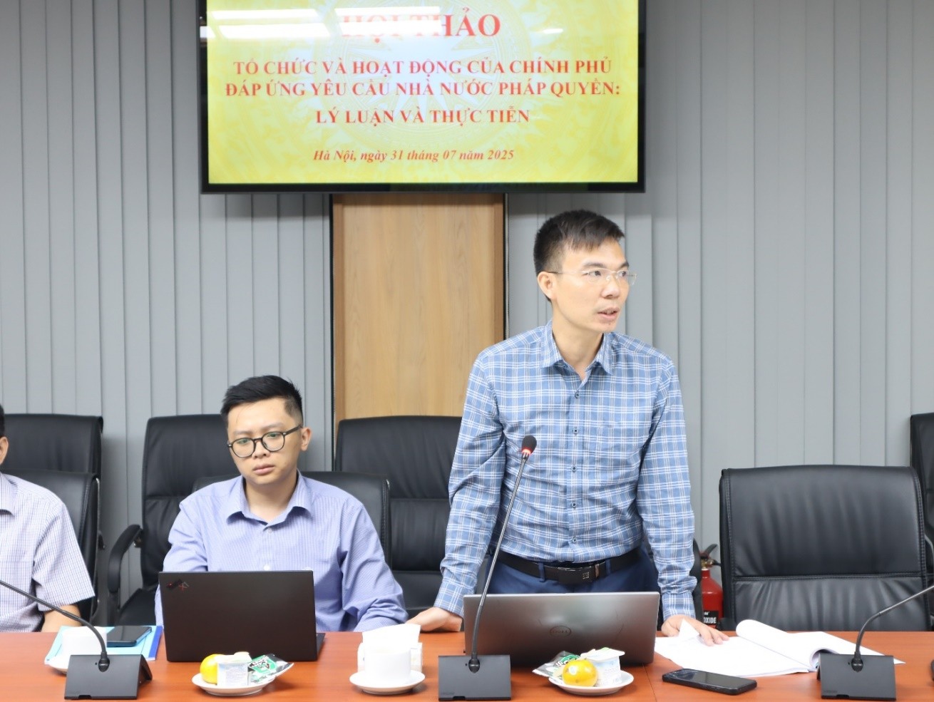 Phát biểu khai mạc, TS. Vũ Xuân Thanh cho biết mục tiêu của Hội thảo là trao đổi, thảo luận, làm rõ một số vấn đề lý luận, thực tiễn và tiếp thu ý kiến của các chuyên gia, nhà khoa học về kết quả đạt được, hạn chế còn tồn tại cùng nguyên nhân khách quan và chủ quan. Trên cơ sở đó, Hội thảo sẽ đưa ra các khuyến nghị và giải pháp nhằm nâng cao hiệu quả tổ chức, hoạt động của Chính phủ đáp ứng yêu cầu của nhà nước pháp quyền.