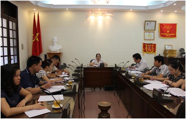 Tham dự buổi họp có lãnh đạo các phòng, trung tâm thuộc Viện. Bà Vũ Thị Hiền, Phó Viện trưởng Viện Khoa học tổ chức nhà nước chủ trì buổi họp.