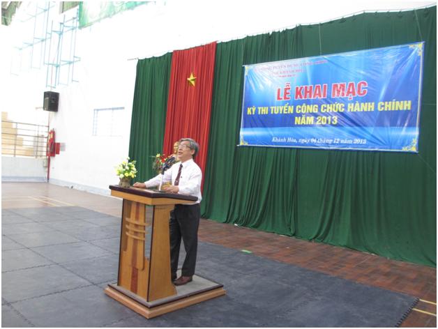 Sáng ngày 04/12/2013, tại Trường Cao đẳng Sư phạm Nha Trang, tỉnh Khánh Hòa đã tổ chức Lễ Khai mạc kỳ thi tuyển công chức hành chính nhà nước của tỉnh năm 2013. Tham dự khai mạc có ông Lê Xuân Thân - Phó Chủ tịch UBND tỉnh, Chủ tịch Hội đồng tuyển dụng công chức tỉnh Khánh Hòa, bà Vũ Thị Hiền – Phó Viện trưởng Viện Khoa học tổ chức nhà nước, Bộ Nội vụ cùng đoàn công tác của Viện hỗ trợ tỉnh tổ chức thi tuyển, thành viên Hội đồng tuyển dụng công chức tỉnh và các thí sinh dự thi.