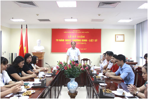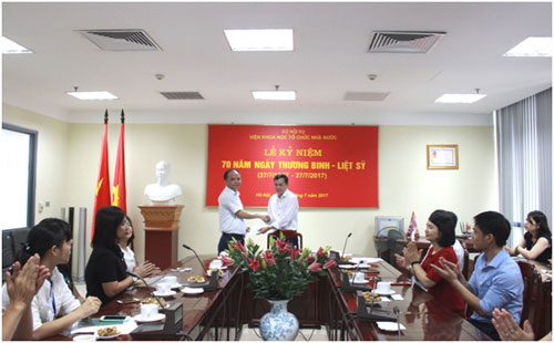 Ngày 27/7/2017, nhân dịp kỷ niệm 70 năm Ngày Thương binh – Liệt sỹ (27/7/1947 – 27/7/2017) và thể hiện đạo lý “Uống nước nhớ nguồn”, Đảng ủy, chính quyền, Công đoàn và Đoàn Thanh niên Viện Khoa học tổ chức nhà nước đã tổ chức buổi gặp mặt tri ân các các gia đình thương binh và liệt sỹ.