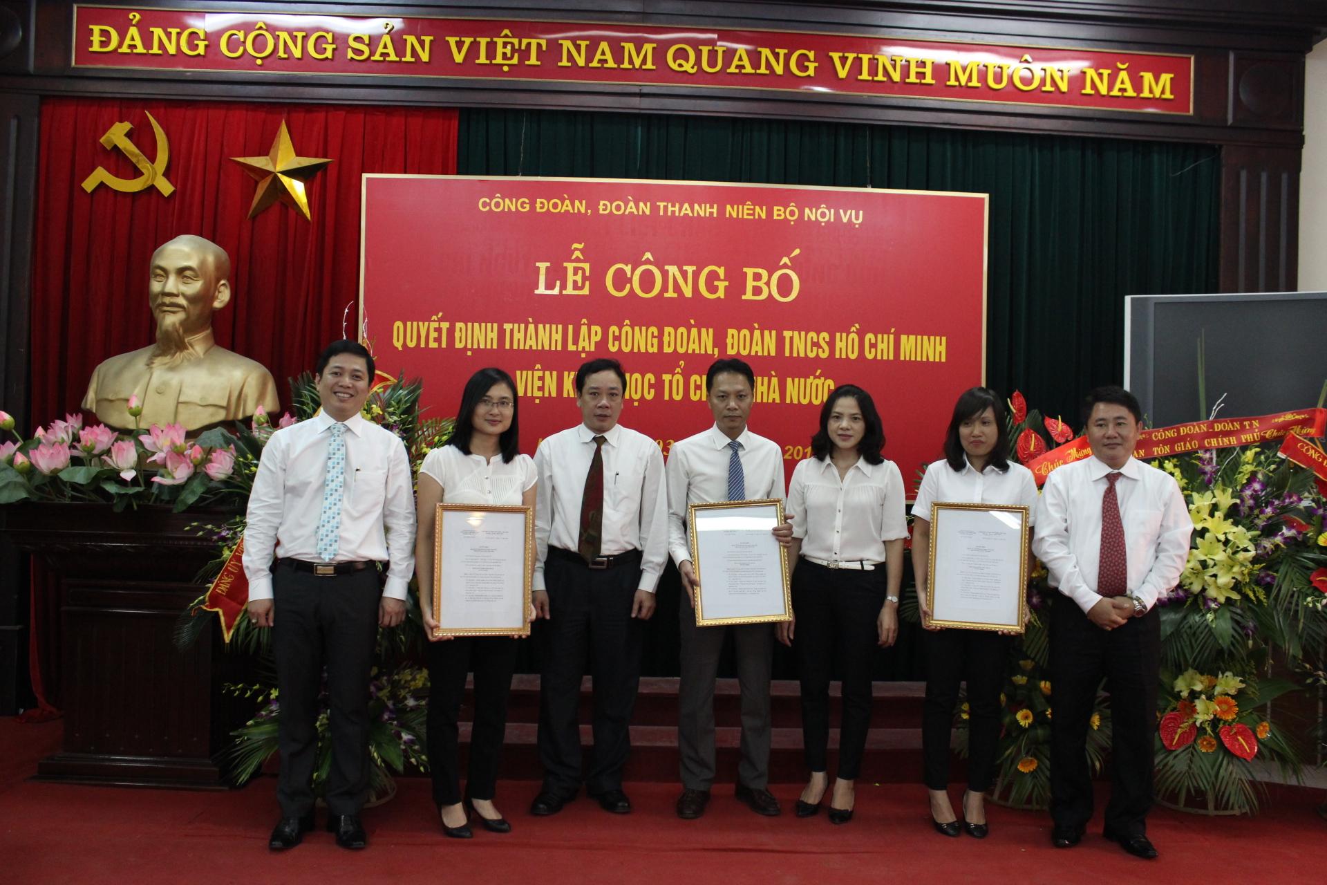 Lãnh đạo Đoàn TNCS Hồ Chí Minh Bộ Nội vụ và Viện Khoa học tổ chức nhà nước trao quyết định thành lập và tặng hoa chúc mừng Đoàn TNCS Hồ Chí Minh Viện Khoa học tổ chức nhà nước trực thuộc Đoàn TNCS Hồ Chí Minh Bộ Nội vụ
