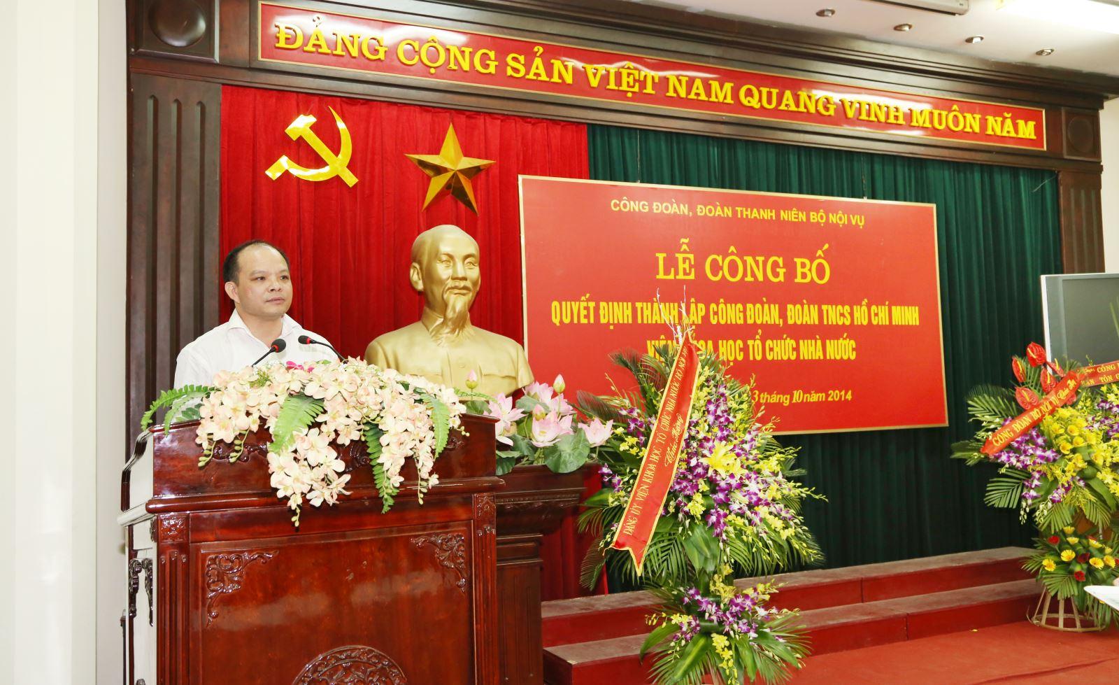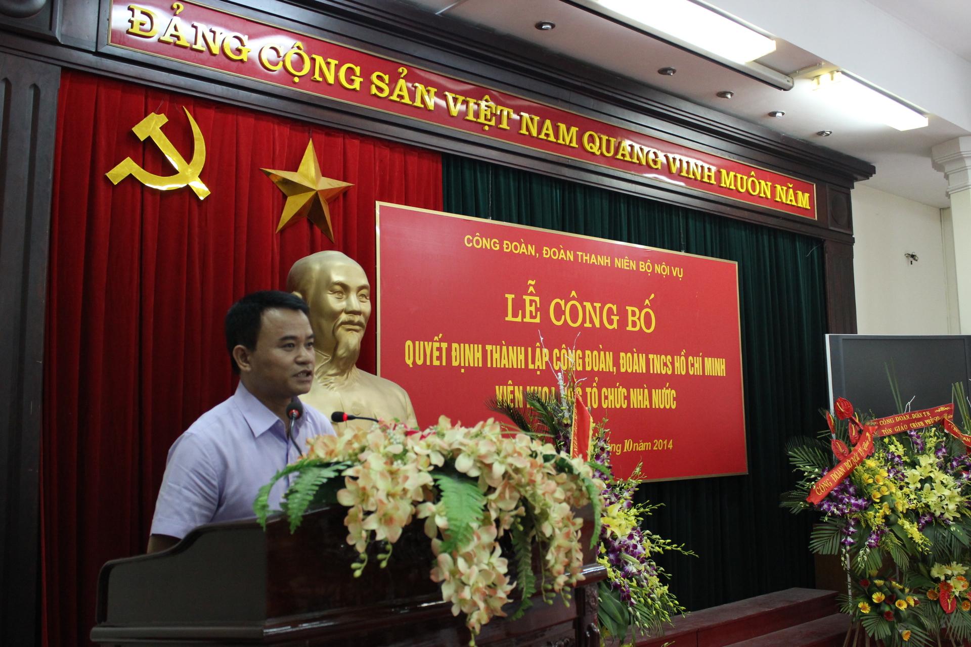 Sáng ngày 03/10/2014, tại trụ sở 37A Nguyễn Bỉnh Khiêm, Hà Nội, Viện Khoa học tổ chức nhà nước đã long trọng tổ chức Lễ công bố Quyết định thành lập Công đoàn, Đoàn Thanh niên Cộng sản (TNCS) Hồ Chí Minh Viện Khoa học tổ chức nhà nước (Lễ công bố).