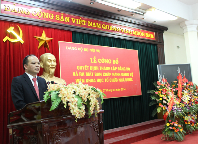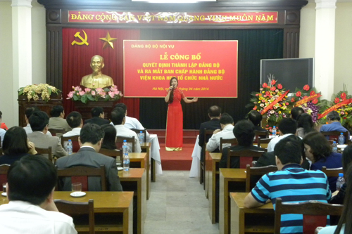 Sáng ngày 07/4/2014, Viện Khoa học tổ chức nhà nước đã long trọng tổ chức buổi Lễ công bố quyết định thành lập Đảng bộ và ra mắt Ban chấp hành Đảng bộ Viện Khoa học tổ chức nhà nước (Lễ công bố).