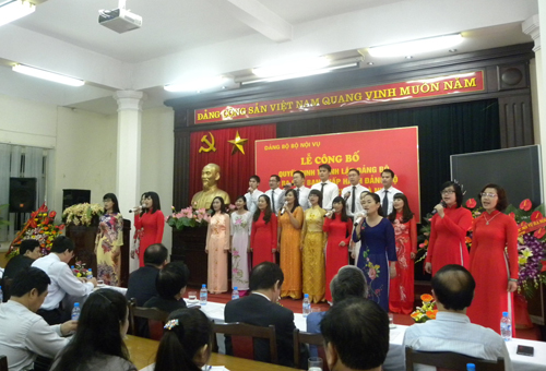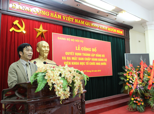 Tại Lễ công bố, đồng chí Mai Thanh Bình, Phó Bí thư thường trực Đảng ủy Bộ Nội vụ đã công bố Quyết định số 539/QĐ-ĐUBNV ngày 24/03/2014 của Đảng ủy Bộ Nội vụ về việc lập Đảng bộ Viện Khoa học tổ chức nhà nước trực thuộc Đảng ủy Bộ Nội vụ.