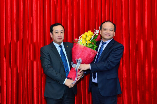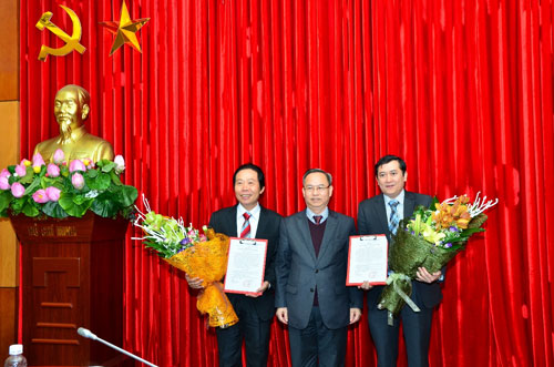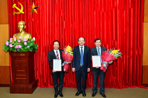 Thay mặt Lãnh đạo Bộ, PGS.TS. Triệu Văn Cường - Thứ trưởng Bộ Nội vụ đã trao Quyết định bổ nhiệm và tặng hoa cho ông Tạ Ngọc Hải và ông Lê Anh Tuấn.