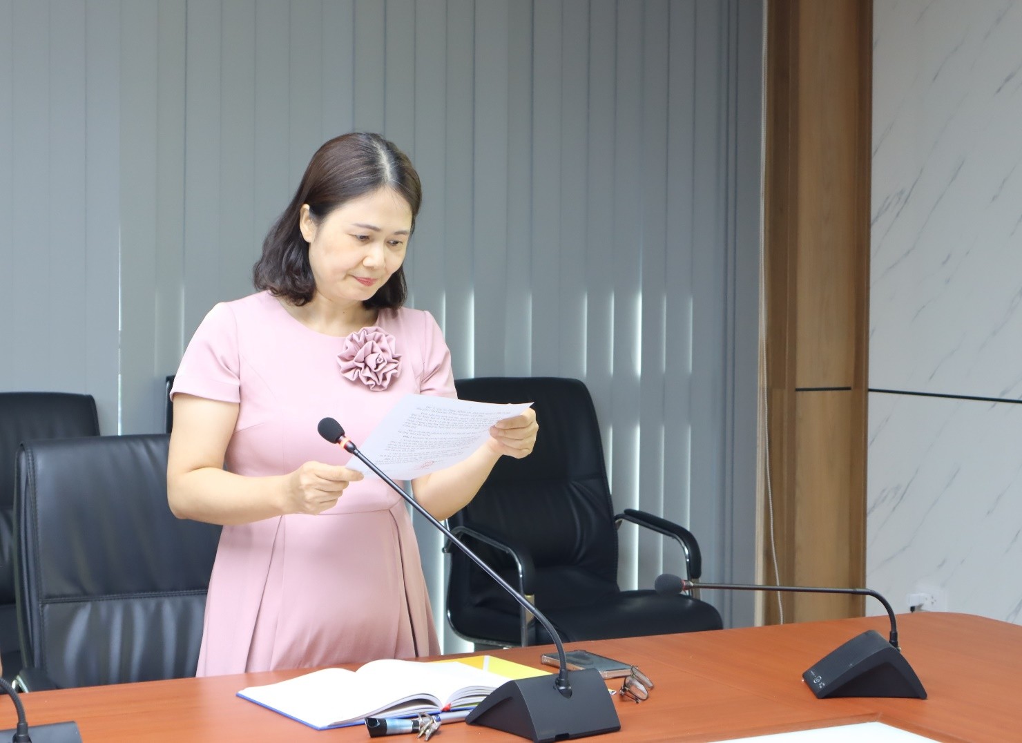 Bà Trần Thị Vân - Chánh Văn phòng Viện KHTCNN&LĐ công bố quyết định nghỉ hưu trước tuổi đối với bà Quách Thị Quế