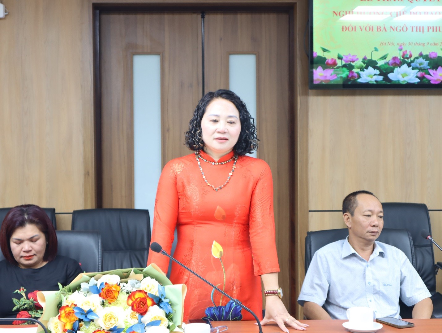 Bà Trần Thị Vân – Chánh Văn phòng Viện KHTCNN&LĐ công bố các Quyết định nghỉ hưu trước tuổi
